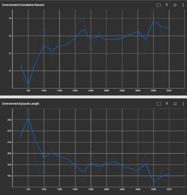 The agent successfully learned to roll over, achieving a primary project goal. Its movement patterns resembled human infant rolling, synchronizing limb movements to generate torso rotation. However, training stability was a challenge, likely due to control sensitivity in the limb scripts. In future work, I would improve consistency in movement by refining control responses and experimenting with algorithm configurations. Adjustments to the agent’s available actions and observations may further enhance training stability